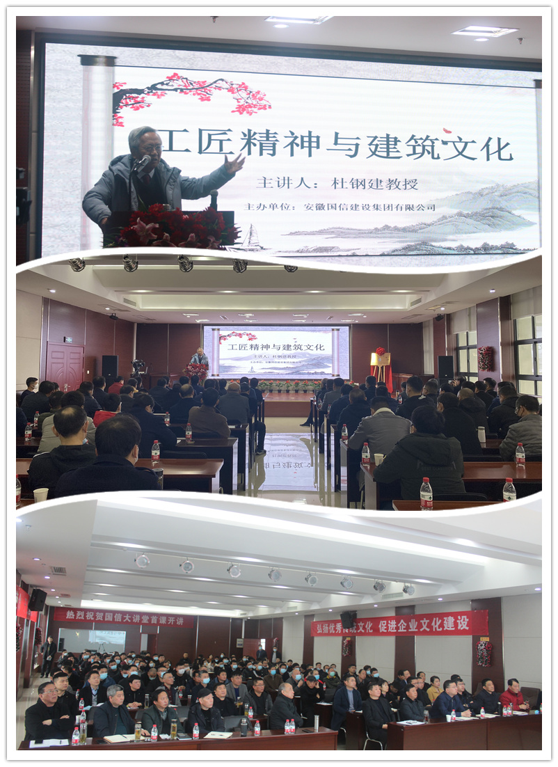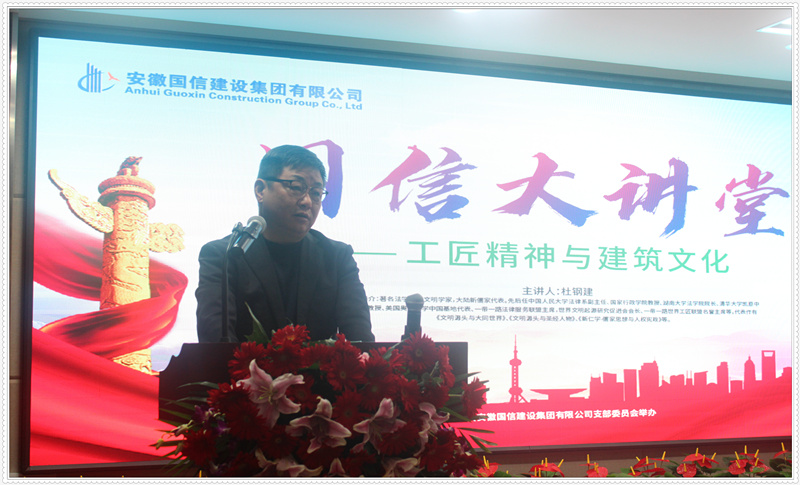 最后,集团党支部书记、董事长周先玉在总结讲话中对杜钢建教授的精彩演讲表示衷心感谢,指出面对经济发展“新常态”的挑战,加强企业文化建设,弘扬工匠精神,提升企业软实力,对新时期建筑施工企业持续发展具有强烈的现实意义。强调在当前建筑业面临转型升级、日益重视工匠精神的今天,国信集团要把优秀的传统文化、精神遗产与时代脉搏相融合,形成独具行业特色的企业文化,为社会注入正能量,提升企业的社会影响力,让工匠精神成为企业精细管理、诚信经营、树立良好社会形象的文化支撑。希望全员把所学所悟运用到工作中去,积极传承优秀建筑文化,弘扬工匠精神,打造更多精品工程。