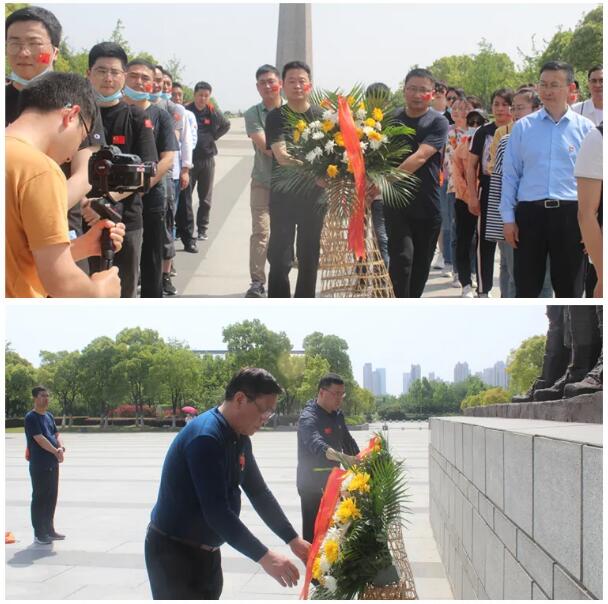 紧接着,在渡江战役纪念馆前举行敬献花篮仪式,大家排成整齐的方阵,集体默哀,向革命烈士敬献花篮。包河青商会会长何学松、国信集团党支部副书记张官斌整理花篮缎带,并带领大家三鞠躬,以表对先烈们崇高的敬意和缅怀之情。