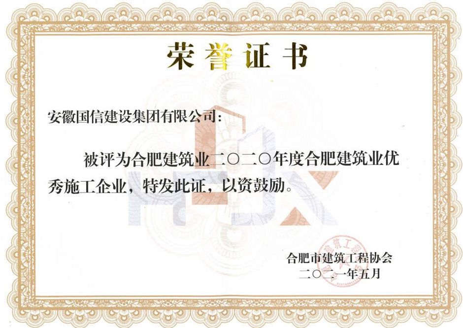 2020年度,国信集团克服疫情、汛情不利影响,积极采取强有力的保障措施,及时复工复产,用大半年时间完成一年的工作,基本实现年初制定的工作计划及各项经济指标,为国信集团进一步发展奠定坚实的基础。凭借出色的企业业绩和良好口碑形象,国信集团在2020年度先后荣获 “中国诚信建设领军品牌企业”、“ 安徽省民营企业百强”、全省民营企业“优秀调查点企业”、“合肥建筑业企业20强”、“合肥建筑业优秀施工总承包企业、“合肥市慈善先进单位”、“包河区优秀民营企业”等荣誉称号。