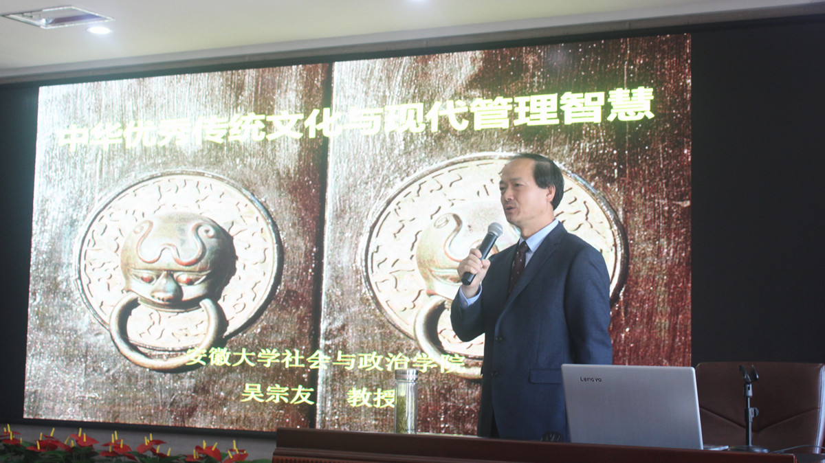 吴宗友教授围绕“中华优秀传统文化与现代管理智慧”主题,通过“理论+案例”的讲授方法,生动精彩地阐述了中国传统文化的内涵,诠释了《中庸》《论语》等中华传统文化中的管理智慧,对企业的管理实践具有重要的启示作用和指导价值。讲座旨在进一步提高大家关于中华优秀传统文化、及其对现代企业管理作用的认识,不断提升企业凝聚力,助推企业高质量发展。