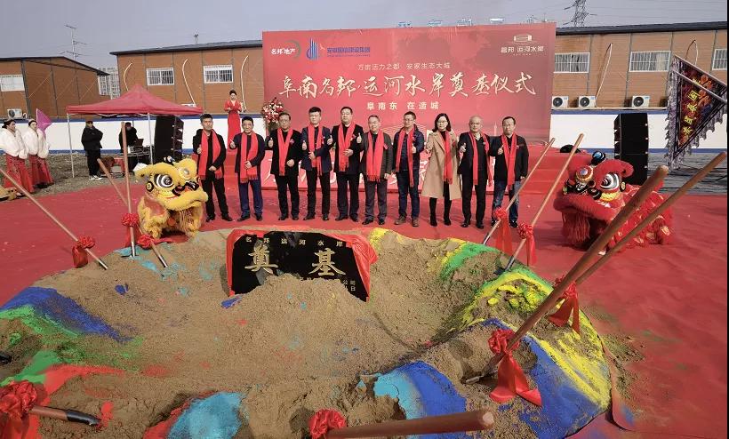 仪式上,名邦置业集团副总裁夏兆生、国信集团副总经理张官斌分别致辞。紧接着,名邦置业集团常务副总裁李宽洲宣布奠基仪式正式启动。在热烈的掌声中,领导嘉宾们共同来到奠基池,拿起金锹,为奠基石注入了幻彩鎏金。至此,阜南名邦·运河水岸项目正式奠基,开始全面进入施工阶段。