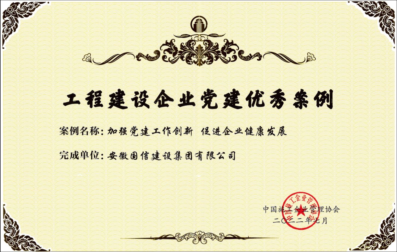 经过为期一个月的征集和两个月的评审,由国信集团报送的案例《加强党建工作创新 促进企业健康发展》获评“工程建设企业党建优秀案例”。