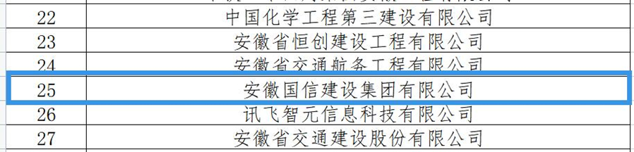 11月7日,从合肥市城乡建设局传来喜讯,国信集团再次被授予“合肥市建筑业龙头企业50强”称号。