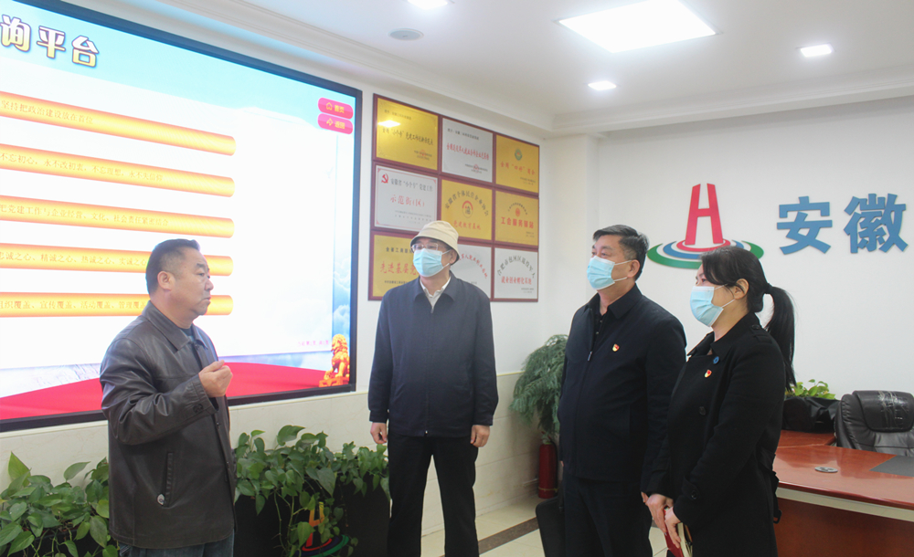 在金水坊文化产业园党总支副书记魏永博的陪同下,大家参观了金水坊文化产业园精心打造的、系统集成的“红色引领”党群文化活动阵地,认真听取了关于搭建“智慧党建”平台、探索“12345”非公特色党建模式、创建“金棕书记工作室”等创新性活动的经验介绍。表示金水坊作为全省“小个专”党建工作示范街区,能够坚持不懈地引领民营企业家坚持党的领导,诚信守法经营、勇担社会责任,并能大力弘扬企业家精神,党建工作不仅在园区内发挥了“助推器”的作用,在芜湖路街道辖区乃至全市、全省都起到了一定的示范带动作用,为民营经济的行稳致远作出了突出贡献。