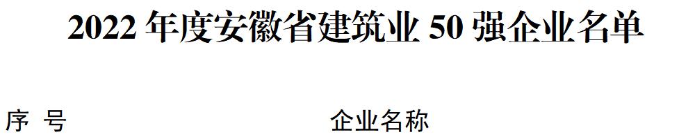 安徽省建筑业50强企业是安徽省住房和城乡建设厅根据《安徽省人民政府办公厅关于推进工程建设管理改革促进建筑业持续健康发展的实施意见》、省住房城乡建设厅等17个部门《关于持续推进建筑业发展的十二条意见》、省住房城乡建设厅《关于加快推进县域建筑业高质量发展的意见》等文件精神组织认定的,旨在进一步培育壮大安徽省建筑业“龙头”企业,带动全省建筑业竞争力的整体提升,实现由建筑业大省向建筑业强省跨越。