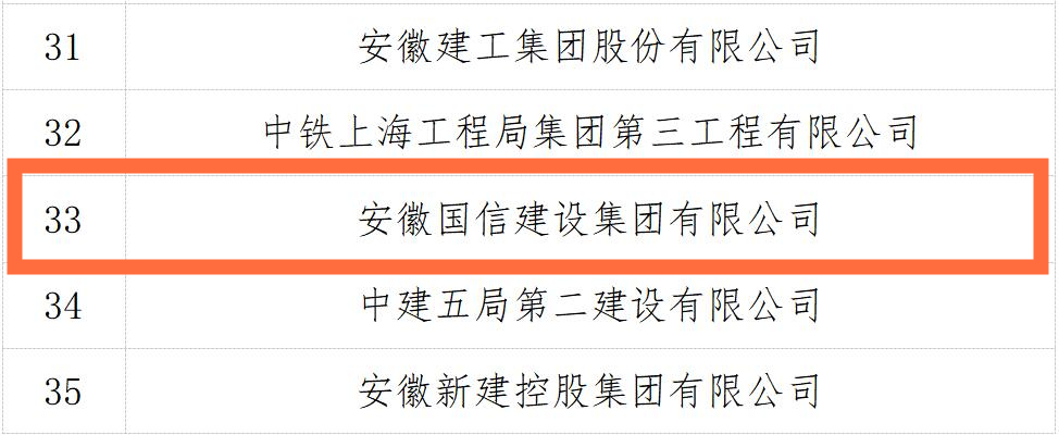 日前,安徽省住房和城乡建设厅发布了《关于公布2022年度安徽省建筑业10强县(市)10强区 50强企业名单的通知》。国信集团凭借稳健的发展态势和良好的企业声誉,再次荣登“安徽省建筑业50强企业”榜单,继2021年度后再次荣获该项荣誉。