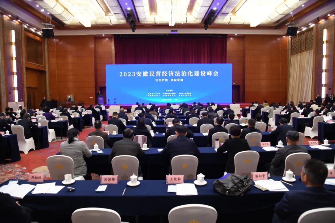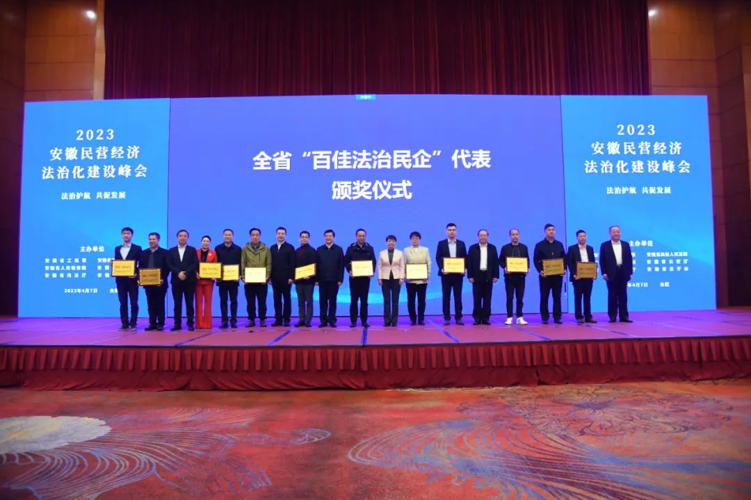 4月7日上午,2023安徽民营经济法治化建设峰会在合肥举行。省人大常委会副主任、省工商联主席王翠凤,省高院党组书记、院长田云鹏,省检察院党组书记、检察长陈武出席峰会并讲话,省委政法委常务副书记、省法学会党组书记董桂文,省公安厅党委委员、副厅长刘海石,省司法厅党委委员、副厅长、一级巡视员张国安出席峰会并作主旨发言。省委统战部副部长、省工商联党组书记胡春华主持峰会,来自全省各地公检法司、法学会、工商联(总商会)负责同志,省工商联直属商会负责同志,企业代表,以及第三方机制专业人员代表共约170余人参加峰会。会上,宣读了《关于表扬全省“百佳法治民企”的通报》,并颁发奖牌。国信集团凭借在依法治企方面取得了突出成绩名列榜单,荣为安徽省“百佳法治民企”。