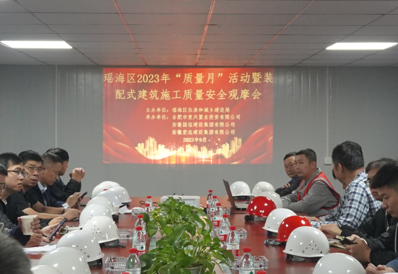 9月22日上午,合肥市瑶海区2023年“质量月”活动暨装配式建筑施工质量安全观摩会在国信集团承建的龚大塘复建点项目成功举办,瑶海区住建局、复兴公司、东投公司等单位相关负责人以及瑶海区各在建装配式建筑项目建设单位项目负责人、施工单位项目经理、监理单位项目总监约50人参加了此次观摩会。