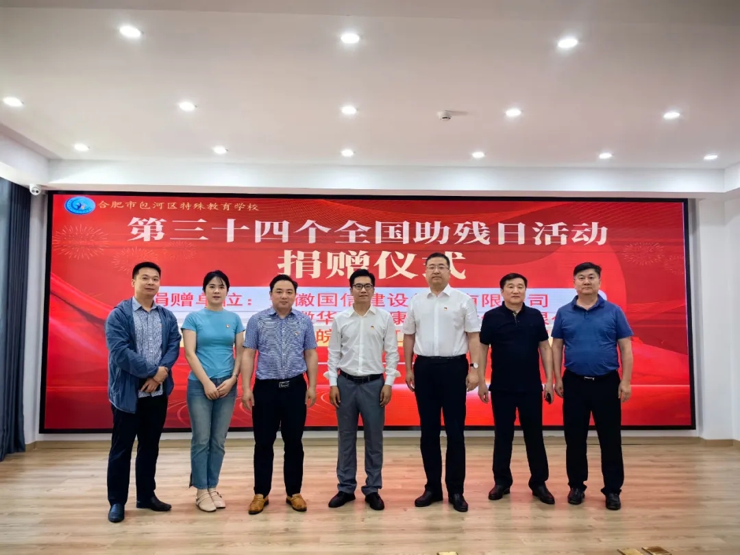助残共融,爱心流传。2024年5月19日是第三十四次全国助残日,今年的主题是“科技助残,共享美好生活”。为迎接此次全国助残日的到来,5月17日上午,合肥市包河区特殊教育学校开展助残主题文艺展演暨爱心捐赠活动。国信集团走进该校,看望学校的全体师生,并用实际行动表达了对特教师生及特教事业的关爱和慰问。国信集团总经理何学松、项目经理贾贤军、办公室主任何章龙参加捐赠活动。