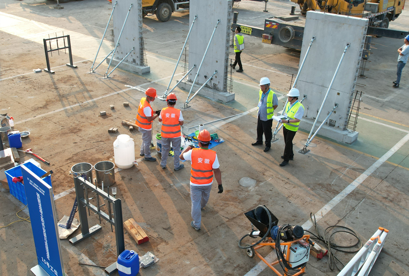 本次竞赛设置预制混凝土构件制作、预制混凝土构件安装与连接灌浆、钢结构构件安装、装配式混凝土建筑专项设计4个工种项目,每个项目分为理论考试和实际操作两个部分。为期3天的赛程中,来自江苏省、浙江省、安徽省、上海市的96支代表队333名装配式建筑产业技能型人才展开激烈角逐。安徽省共计24支代表队、84名选手参加竞赛,其中国信集团代表队荣获预制混凝土构件安装与连接灌浆组第三名的佳绩。