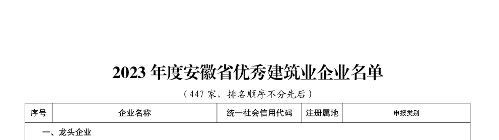 “安徽省优秀建筑业企业”是对我省建筑业企业综合实力的认定,旨在充分发挥优秀建筑业企业的引领带头作用,推动建筑业高质量发展,锻造和打响“安徽建造”品牌。