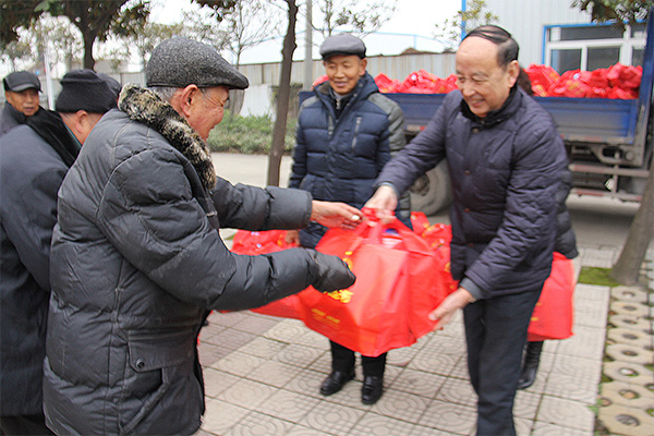 1月18日上午,国信集团名誉董事长何勋法、工会主席张宏霞、办公室主任何章龙等在包河区慈善协会、包河区民政局等领导陪同下,带着5万元133份春节大礼包分别来到包河区淝河镇、大圩镇、义城街道敬老院,为133位老人送去新春的祝福。