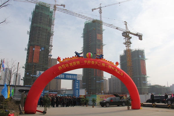 1月16日上午,由安徽国信国瑞房地产公司投资、安徽国信建设集团有限公司承建的芜湖国信·学府春天二期工程举行盛大封顶仪式,国信集团名誉董事长何勋法、董事长周先玉、总经理何学松及芜湖县相关单位领导、合作单位等代表参加封顶仪式。