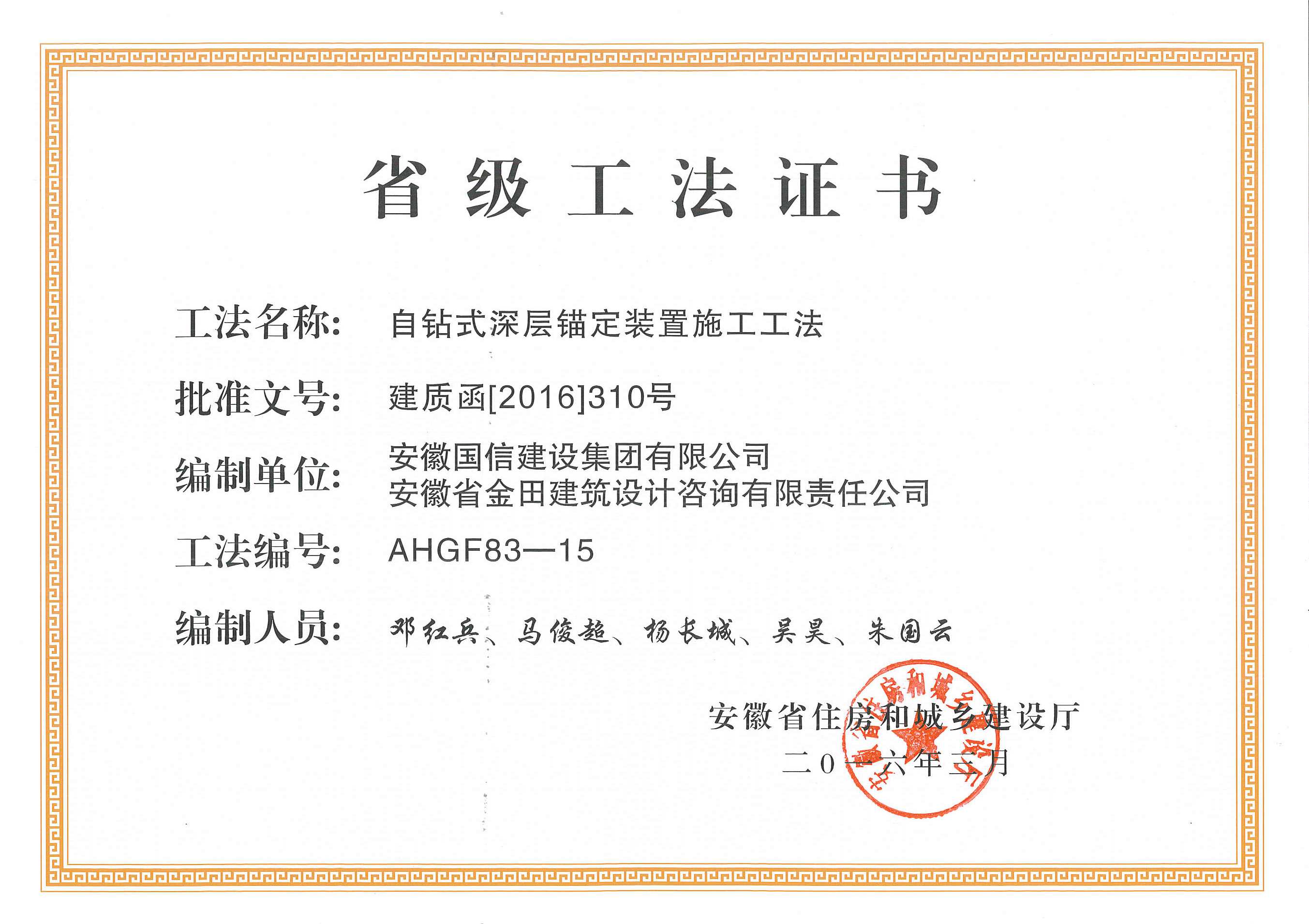 省级工法:自钻式深层锚定装置施工工法