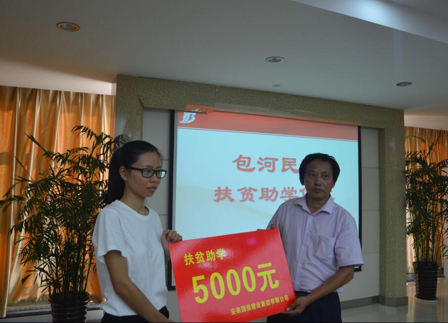 8月22日下午,“包河·休宁”工商联友好共建座谈会暨“包河民商扶贫助学”仪式在包河区政务中心召开,休宁县一行,包河区委统战部、区工商联相关负责人,安徽国信建设集团有限公司等5家爱心企业参加会议。捐赠仪式上,国信集团副总经理邓红兵向休宁县10名贫困学生分别发放5000元助学金,这是自2015年以来国信集团对休宁县贫困学生的第三次资助。