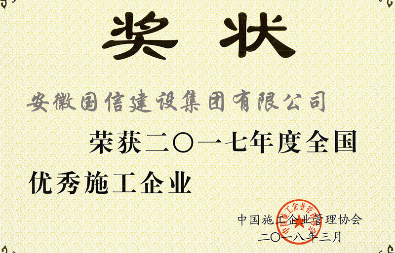 4月20日,从中国施工企业管理协会第33次年会暨2018年工程建设行业发展论坛上传来喜讯,国信集团荣获“2017年度全国优秀施工企业”称号,这是国信第四次获此殊荣。项目经理梅发松荣为2017年度“工程建设优秀项目经理”。