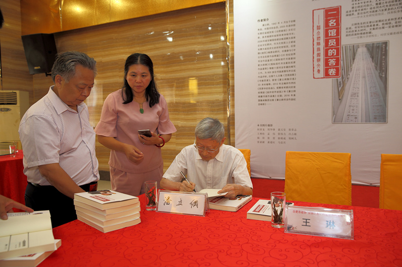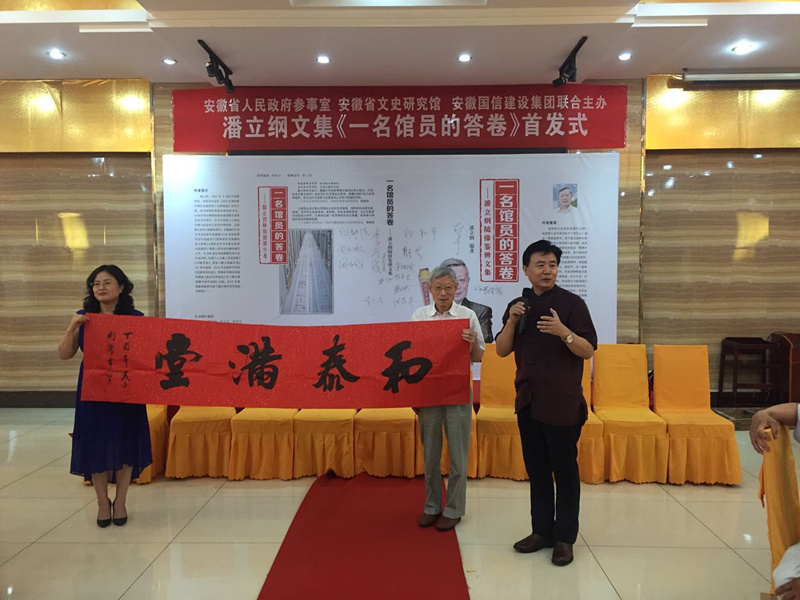 近日,资深老报人、安徽省文史研究馆馆员、安徽国信建设集团首席企业文化顾问潘立纲文集《一名馆员的答卷——潘立纲随缘鉴辨文集》由安徽教育出版社出版。9月7日,安徽省人民政府参事室、安徽省文史研究馆、安徽国信建设集团联合在肥举行该书首发式。省政府参事室党组书记、主任白和平,省人大常委会原副主任杜宏本,安徽国信建设集团名誉董事长何勋法,省老新闻工作者协会常务副会长季如成,合肥市政协原副主席、市老年书画院院长王琳出席首发式。省文史研究馆原副馆长余家林,馆员贾德福、韦君琳、孙叙伦、翁飞,特约研究员夏树生、黄小舟等,以及社会各界人士近百人参加首发式。仪式由省出版集团党委副书记程春雷主持。