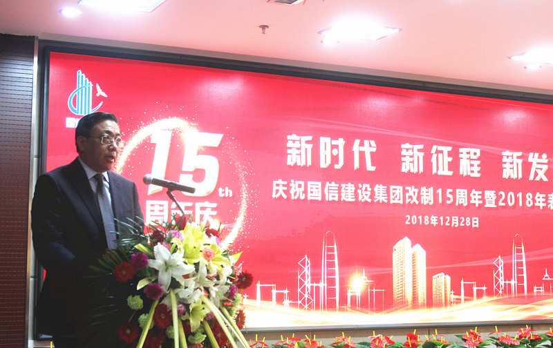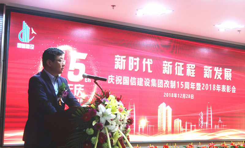 国信建设集团总经理何学松向大会作了“国信的十五年”主题总结报告,他深情回顾了国信建设集团自2003年12月28日改制以来,艰苦奋斗、自强不息,诚信经营的创业史;锐意进取、开拓创新,争创一流的兴业史;科学管理、稳健运营,追求卓越的发展史;铸就了“务实、高效、开拓、创新”的企业精神。号召全体国信人不忘初心,牢记使命,踏上新征程,作出新贡献!