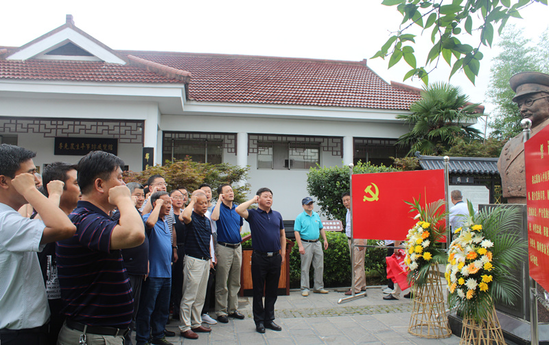 上午10点,大家在讲解员的带领下参观了李克农将军的故居和事迹陈列馆。李克农将军是我党我军隐蔽战线的卓越领导人,在长期的革命生涯中,他始终不渝地忠于党的事业,以对党无比忠诚和高度负责的精神,在紧急关头保卫了党中央的安全,在关键时刻向党中央提供了决策性情报,为人民解放和民族独立作出了重大贡献,被人们誉为“传奇将军”。党员们认真聆听讲解,阅读文物介绍,一幅幅老照片,一件件历史实物,再现了李克农将军波澜壮阔而又充满传奇的一生和他对党和国家的无限忠诚,深深地震撼着每名党员的心灵。在李克农将军的铜像前,全体党员高举右臂,紧握右拳,面对党旗,重温了入党誓词。