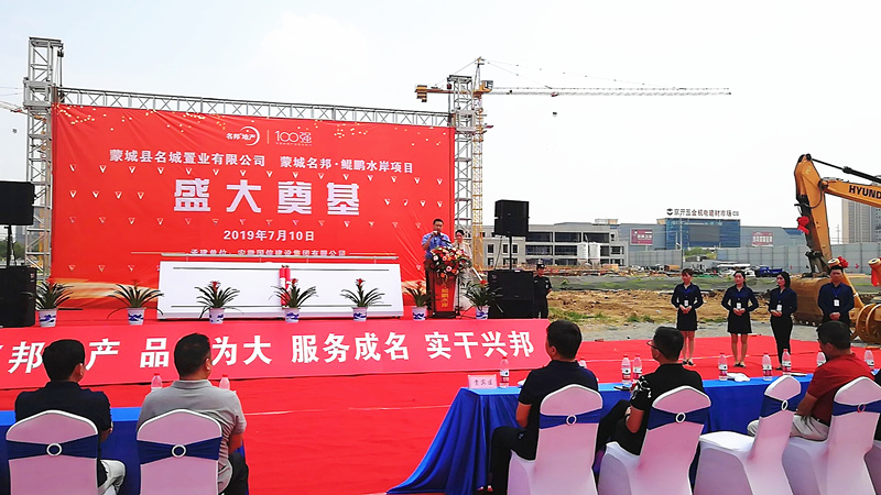 何学松在致辞中向工程的开工表示祝贺,表示国信集团与名邦置业合作的13年里,相继在合肥、蒙城、霍山、固镇、涡阳等地承建了多个精品工程,在为建设方贡献一份力量的同时,也树立了国信集团良好的企业形象。下一步将和相关单位密切配合,真诚合作,坚持高起点、高标准、高效率运作,高质量施工,高水平完成,向建设单位交付一个优质工程、满意工程,为蒙城城市建设增光添彩。