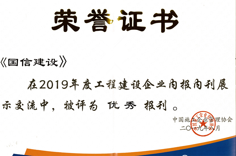 8月21日至22日,由中国施工企业管理协会举办的2019年度工程建设行业企业文化交流大会在天津隆重召开。会上表彰了2019年度工程建设行业优秀联络员和通讯员,并对优秀报刊、期刊以及摄影诗歌等作品进行了交流点评。《国信建设》从参评的全国工程建设系统数百家报纸中脱颖而出,喜获2019年度工程建设企业“优秀报刊”称号,这是该报继被中国建筑业协会评为“全国建筑行业精品报纸”和被中国施工企业管理协会评为全国工程建设行业报纸银页奖后获得的又一殊荣。何章龙荣为年度优秀联络员,李其威荣为年度优秀通讯员。