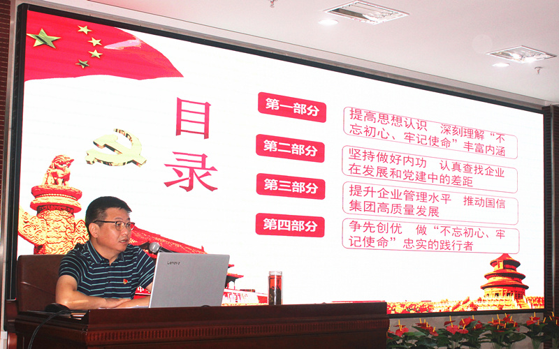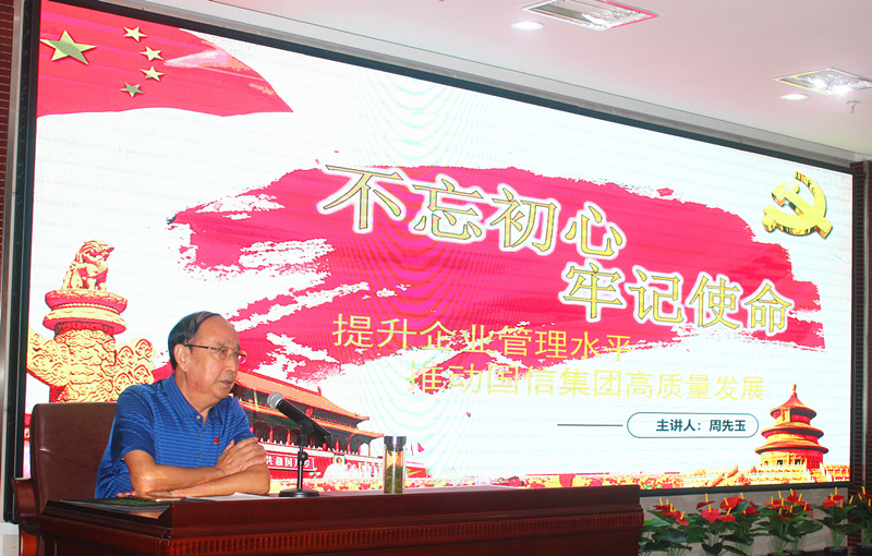 9月28日上午,国信集团党支部书记、董事长周先玉以“提高企业管理水平,推动国信集团高质量发展”为题,为公司领导班子成员及本部全体党员、员工,上了一堂“不忘初心、牢记使命”主题教育专题党课。