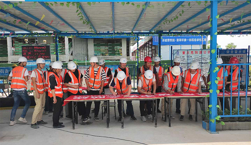 广泛宣传,营造安全生产氛围。集团各单位、项目部纷纷响应集团号召,组织开展了丰富多彩的宣传活动,在工地设置安全生产宣传展板,悬挂“安全生产月”主题横幅,在工地举行签名、宣誓等活动,充分利用LED屏宣传“安全生产月”活动主题,营造良好的活动氛围。