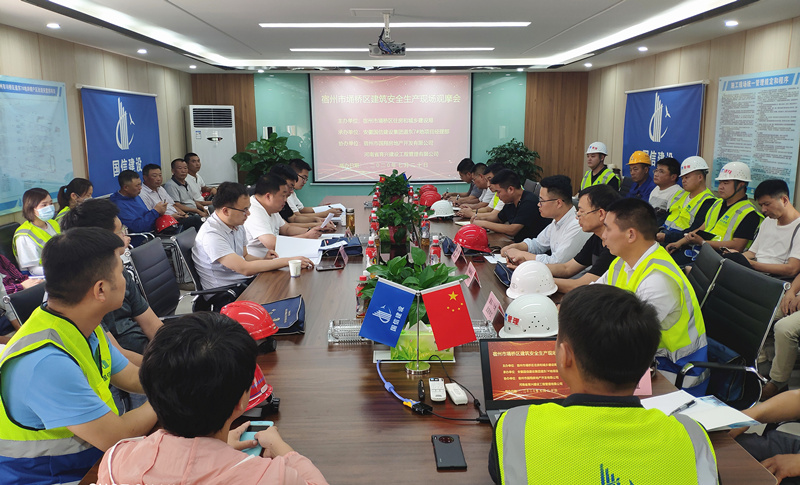 为进一步加强建筑施工安全防范措施的落实,切实强化安全监管和风险防范,确保安全生产形势平稳可控,落实安全生产主体责任,坚决防范安全生产事故发生。7月20日下午,由宿州市埇桥区住建局主办的建筑安全生产现场观摩会在国信集团承建的道东7#地棚改安置房项目工地举行。埇桥区住建局领导金国庆、伯虎、尹伟峰及埇桥区各在建单位相关人员约60人参加活动。