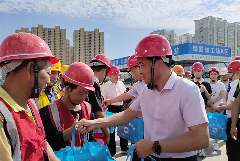 连日来,宿州地区持续多日高温天气,但是道东7号地项目施工现场依然呈现如火如荼的大干景象,看望慰问活动更加鼓舞了一线员工的士气,确保了项目的又好又快进行。