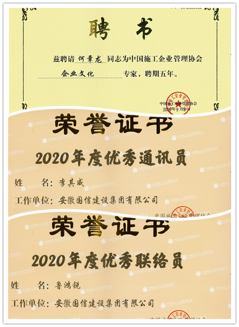 会议期间,展示交流了行业精品报纸和杂志,颁发了中国施工企业管理协会企业文化专家聘书,公布了工程建设行业传媒作品大赛成果,通报表扬了2020年度中国施工企业管理协会优秀通讯员和联络员,组织与会代表参观了中铁二局集团有限公司和中国五冶集团有限公司文化展厅。《国信建设》从参评的全国工程建设系统数百家报纸中脱颖而出,喜获首届工程建设行业传媒作品大赛“优秀报刊”称号,这是该报继被中国建筑业协会评为“全国建筑行业精品报纸”和被中国施工企业管理协会评为全国工程建设行业报纸银页奖后获得的又一殊荣。何章龙被聘为中国施工企业管理协会企业文化专家,李其威荣为优秀通讯员,鲁鸿锐荣为优秀联络员。