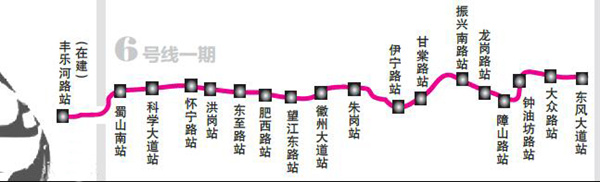 其中,合肥市轨道交通4号线南延线及6号线一期土建施工总承包3标段由中国铁建大桥工程局集团公司与国信集团组成的联合体负责建设,中标价约15.5亿元,共3站5区间,分别为洪岗站 、东至路站、肥西路站、怀宁路站-洪岗站区间、洪岗站-东至路站区间、东至路站-肥西路站区间、肥西路站-望江东路站区间、望江东路站-徽州大道站区间,总工期2191日历天。